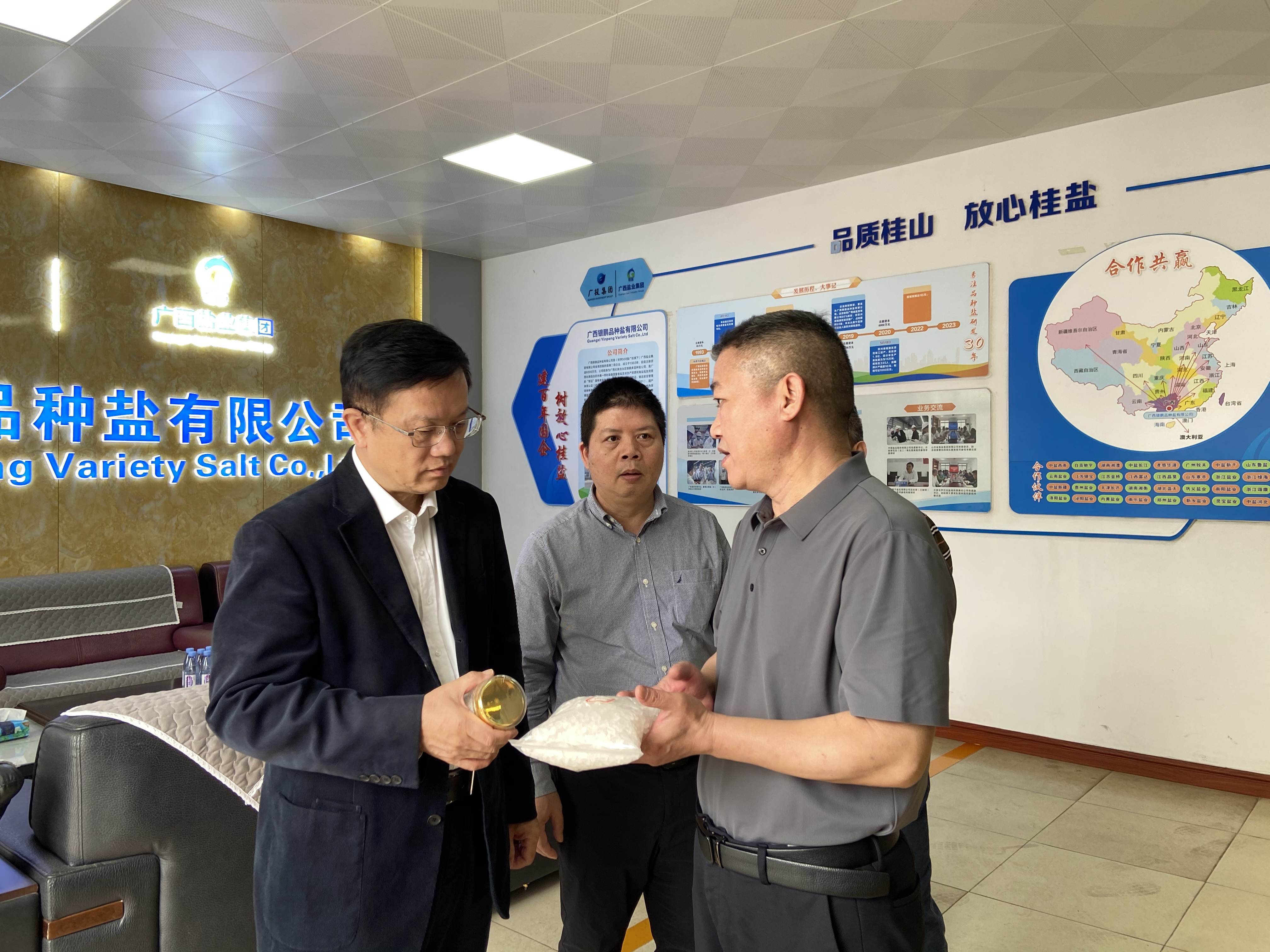 2025年3月13日至14日,廣投集團派駐鹽業集團專職外部董事陸生平、何雁等一行到廣西鹽業集團有限公司欽州分公司、廣西銀鵬品種鹽有限公司進行調研,深入了解企業經營、食鹽銷售、資產管理及創新研發等工作情況,并對兩家公司未來發展提出指導性意見。