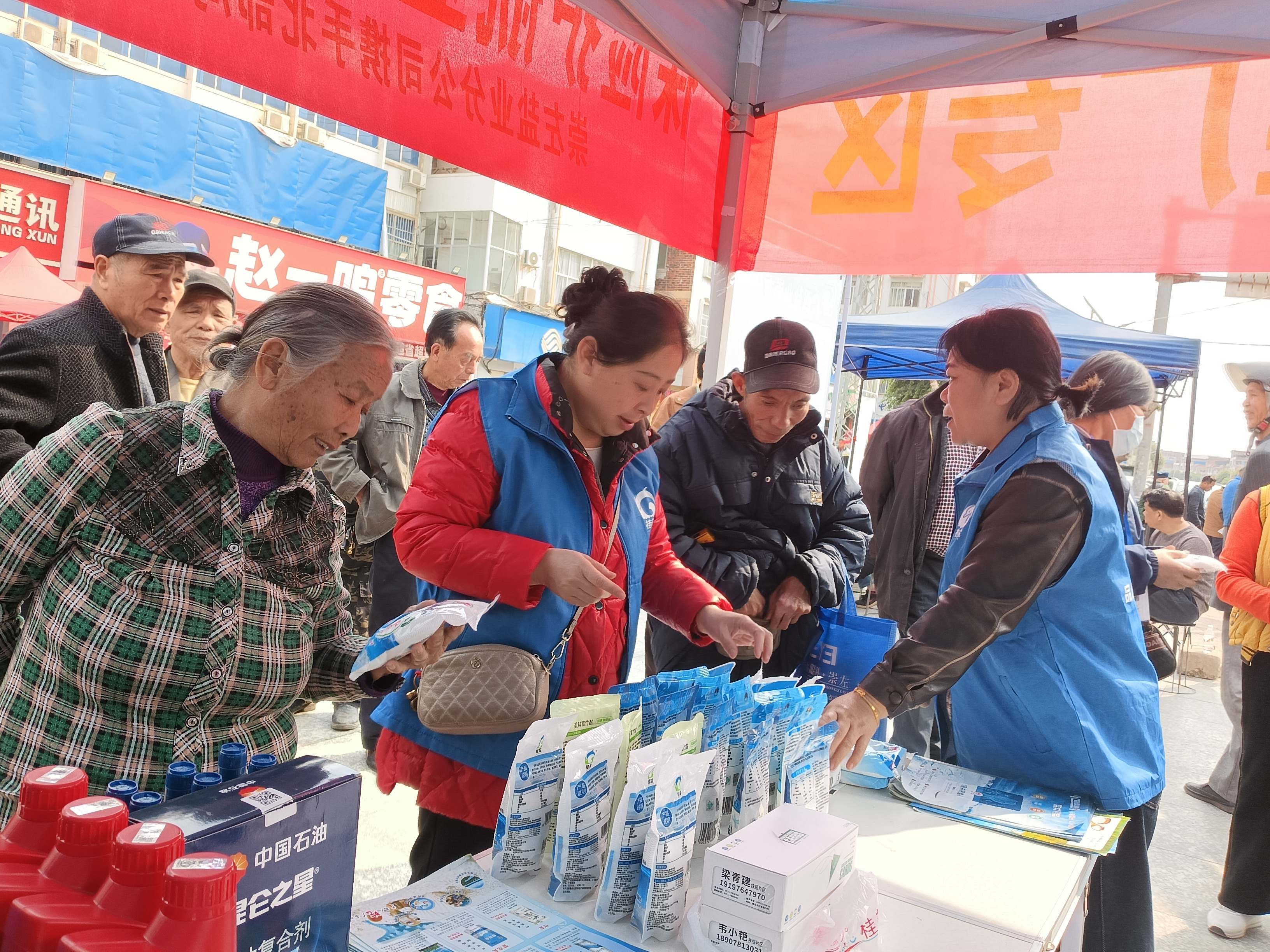 在活動現場,廣西鹽業崇左分公司積極開展食鹽地推活動。工作人員熱情地向民眾發放宣傳資料,詳細介紹低鈉鹽、零添加生態海鹽及海藻碘鹽等不同種類鹽品的特性與優勢。北部灣保險崇左分公司為農戶們悉心講解各類助農保險項目。從農作物種植險,為甘蔗、桉樹、水稻等作物的健康生長一路護航,讓農戶們安心發展甘蔗種植產業,全力為農業生產筑牢堅固防線。